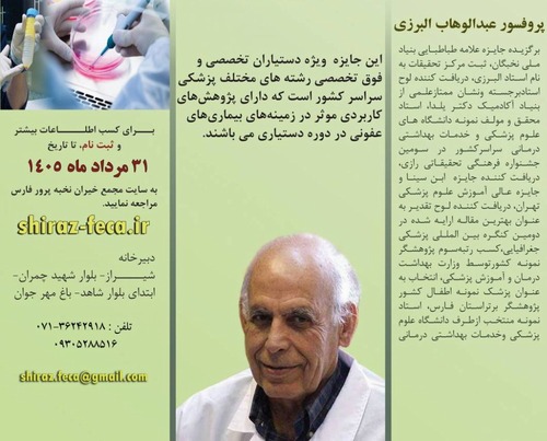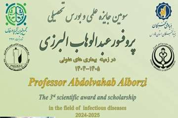 سومین جایزه علمی و بورس تحصیلی پروفسور عبدالوهاب البرزی در بیماری های عفونی 1405-1404 1405/02/01 - کد خبر : 149537 - گروه خبری : اخبار و اطلاعیه ها - تعداد نظرات : 0 این جایزه ویژه دستیاران تخصصی و فوق تخصصی رشته های مختلف پزشکی سراسر کشور است.